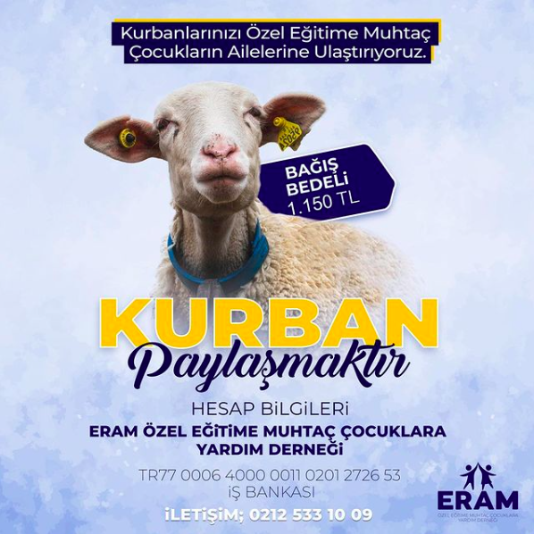 Kurbanlarınızı Özel Eğitime Muhtaç Çocukların Ailelerine Ulaştırıyoruz. Kurban Paylaşmaktır. İletişim için; 0212 533 10 09